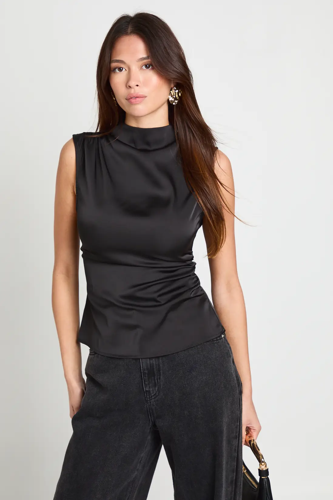 Boohoo Satin High Neck Ruched Top – €16