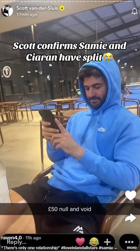 What’s more is that Ciaran even confirmed the split in a livestream on Snapchat, while playing padel with Scott Van Der Sluis.